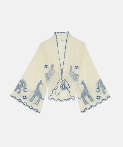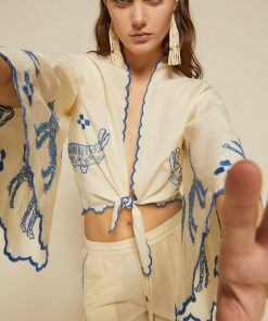 100% cotton knotted shirt with embroidery and contrasting scalloped trims