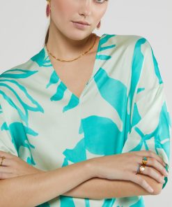 100% printed viscose V-neck sweater with 3/4 sleeves