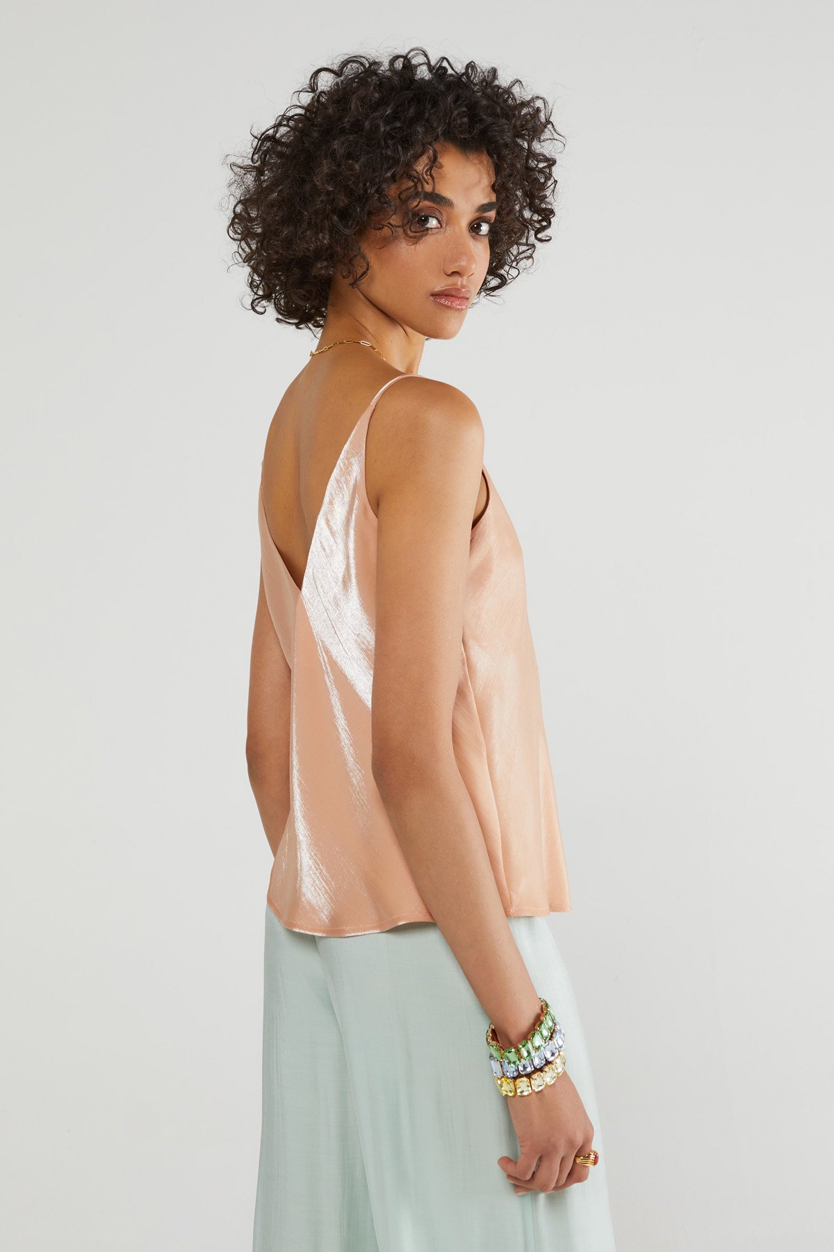 Fluid shiny effect V-neck top